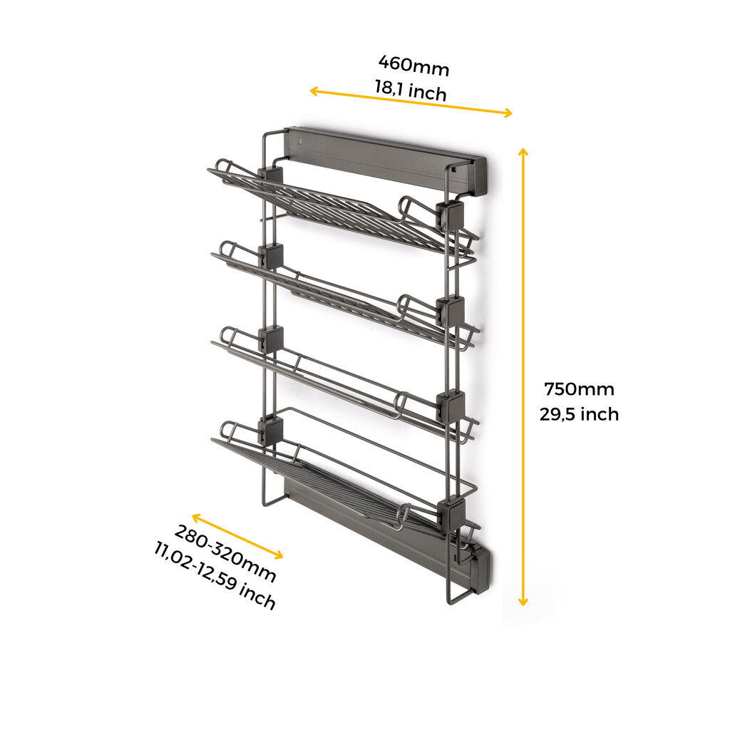 Suport pantofi extractabil, 4 niveluri, titan, Emuca
